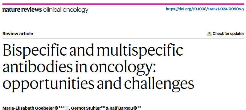 文章轉自:BioMed科技,點擊訪問微信鏈接:IF:78.8!Nature系列綜述: 面向腫瘤的雙特異性和多特異性抗體—機遇與挑戰