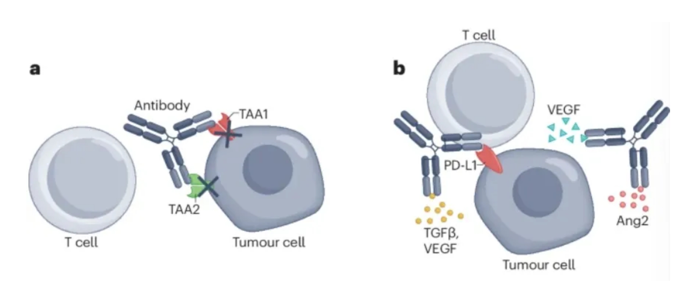 在過去的二十年里,設計用于同時結合兩種抗原或表位的雙特異性抗體的研究取得了巨大進展。由于蛋白質工程技術的進步和大量的臨床前研究工作,雙特異性抗體還在不斷開發和優化,以提高其療效和減輕毒性。到目前為止,這些藥物中有200多種,其中大多數是雙特異性免疫細胞接合劑(TCE)。