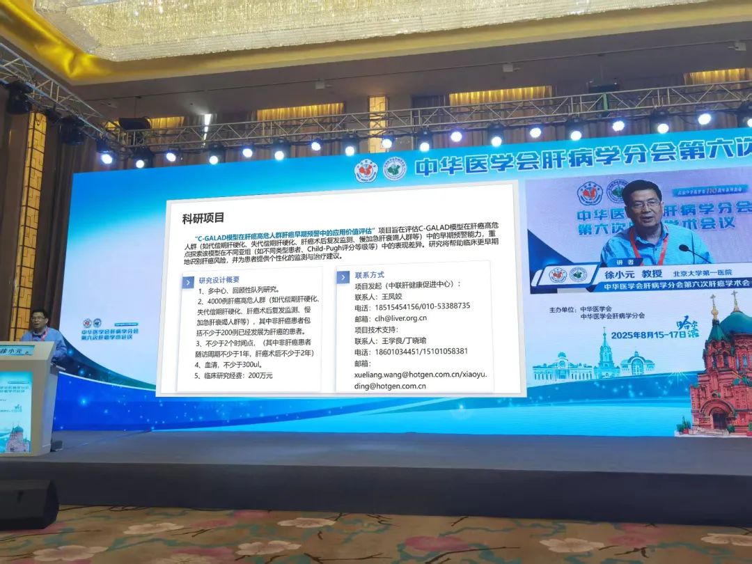 ? “揭榜掛帥”助力肝癌早篩研究:為加速肝癌早期預警技術的臨床轉化與精準應用,徐小元教授在會上重磅發布“C-GALAD模型預警肝癌風險”揭榜掛帥科研項目。該項目投入200萬元科研經費,面向全國招募具備肝癌高危隊列資源的醫院或研究機構,合作開展多中心、大樣本量(4000例)的回顧性研究。研究旨在深入評估C-GALAD模型(整合AFP、AFP-L3%、DCP及年齡、性別)在不同類型肝癌高危人群(如肝硬化、肝癌術后、肝衰竭等)中的早期預警效能及其亞組表現差異,研究將幫助臨床更早期地識別肝癌風險,并為患者提供個性化的監測與治療建議。