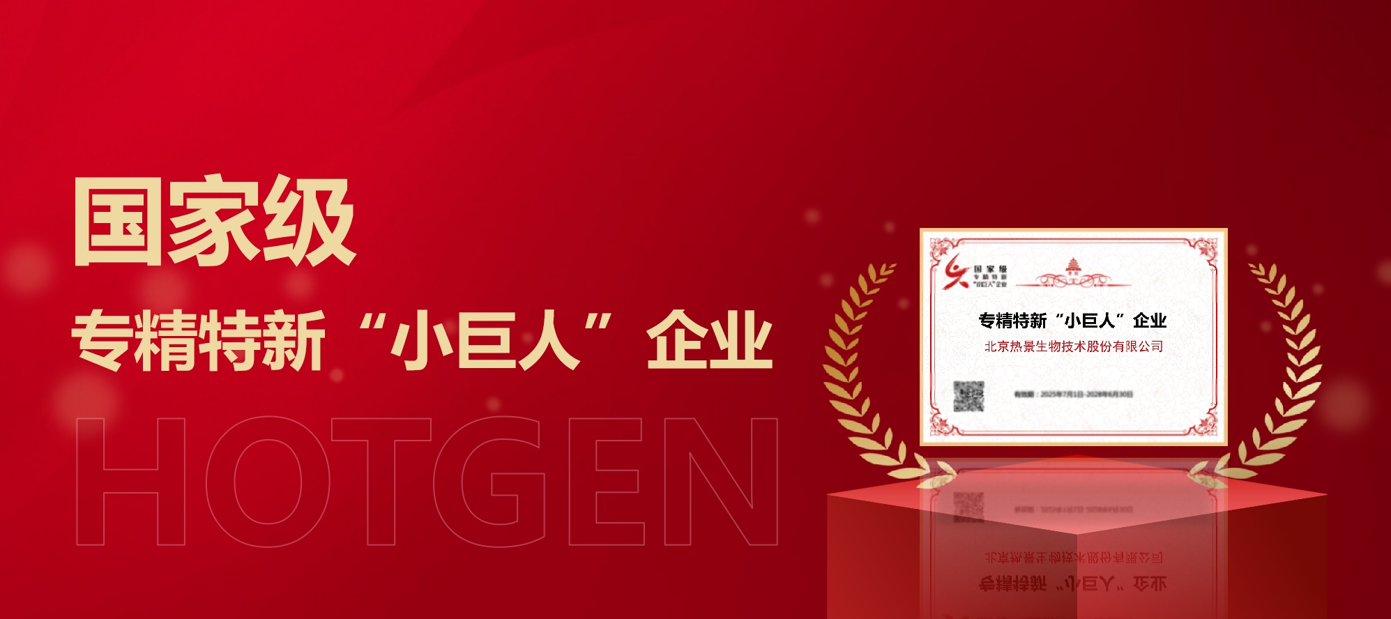 喜報(bào)!熱景生物成功入選第七批國家級(jí)專精特新 “小巨人” 企業(yè)